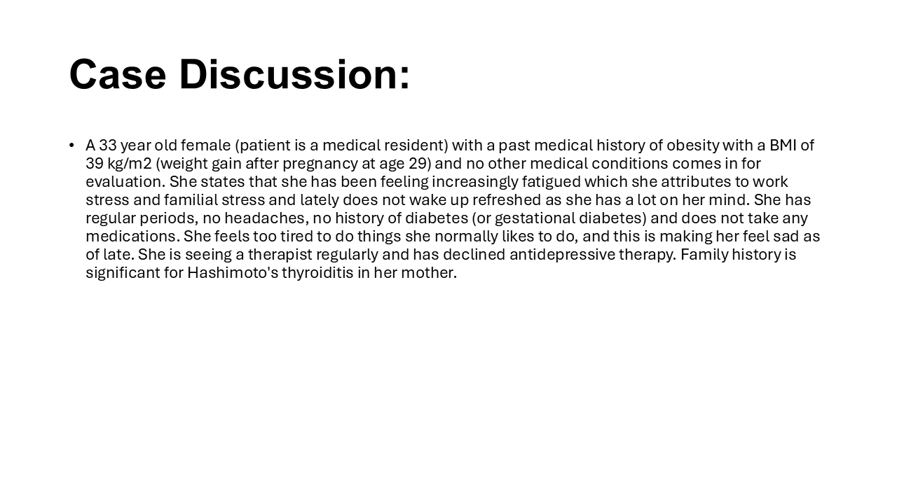 Disclaimer: The information provided on this website is for general educational purposes only and should not be considered professional advice. It is primarily intended for medical professionals, particularly endocrinology residents. Please consult a qualified professional for guidance specific to your situation.
